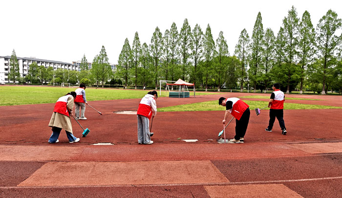 活动伊始,组织员焦春婉带领全体党员结合校园实际,探讨了如何在日常生活中践行绿色低碳理念。在支部助理翟静雯的组织下,所有党员明确分工,有序的投入到清扫当中。同学手持扫帚、簸箕、垃圾袋等清洁工具,对操场、运动场和体育设施进行了全面清理。同学们一边劳动,一边交流着对环保的看法和对世界地球日的认识,现场气氛热烈融洽。