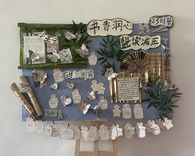 本次“书香润心 阅读减压”活动的成功举办,为23财管班的同学们带来了诸多收获。阅读分享让同学们在交流中汲取知识,拓宽视野,同时也增进了同学之间的友谊与合作;书香文化墙的制作则激发了同学们的创造力和团队协作能力,让班级文化更加丰富多元。通过阅读,同学们在忙碌的学习生活中找到了一片宁静的天地,缓解了压力,提升了心理素质。书籍成为了同学们心灵的慰藉,让他们在知识的海洋中遨游,在文化的滋养中成长。