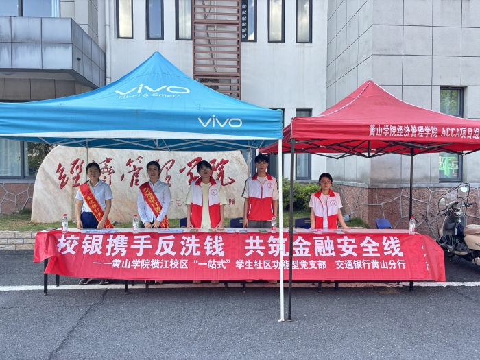 5月29日下午,横江校区“一站式”学生社区功能型党支部联合交通银行黄山分行开展“校银携手反洗钱·共筑金融安全线”反洗钱防诈骗宣传活动。
