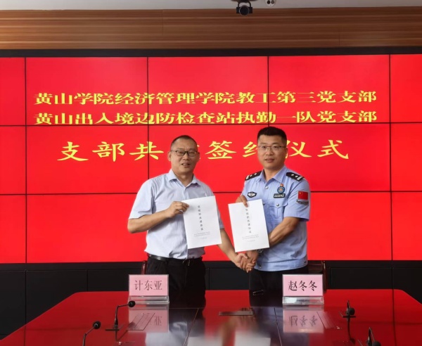 为深化新时代基层党组织建设,探索“党建引领、资源共享、人才共育”的创新路径,2025年6月13日下午,黄山出入境边防检查站执勤一队党支部与beat365英国官方网站beat365英国官方网站教工第三党支部正式签署《警校支部共建协议》,标志着双方在拓展邻里党建联盟外延、推动业务与育人深度融合方面迈出关键一步。