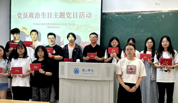 2025年6月19日,beat365英国官方网站beat365英国官方网站学生第二党支部在横江校区1207教室前举行了一场别开生面的“过政治生日”主题活动,通过重温入党初心、研讨党员责任担当,进一步强化支部党员的身份意识和使命意识。活动由beat365英国官方网站组织员焦春婉主持,支部全体党员参加。
