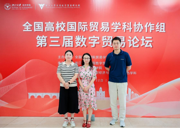 2025年6月21日,由全国高校国际贸易学科协作组主办,浙江大学中国数字贸易研究院、浙江大学经济学院承办的第三届数字贸易论坛在浙江杭州成功举办。beat365英国官方网站国际经济与贸易专业教师代表李茜、张琛、钱琨参加此次会议。