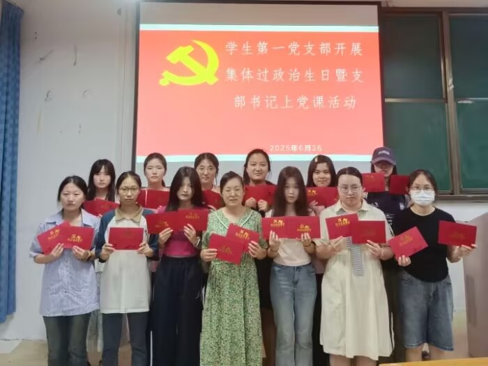 为强化学生党员党性修养,深化作风建设,2025年6月26日,学生第一党支部在1101教室开展集体政治生日仪式,同步开展深入贯彻中央八项规定精神学习教育专题党课,以双重活动筑牢思想根基,激发使命担当。活动由党支部书记主持。