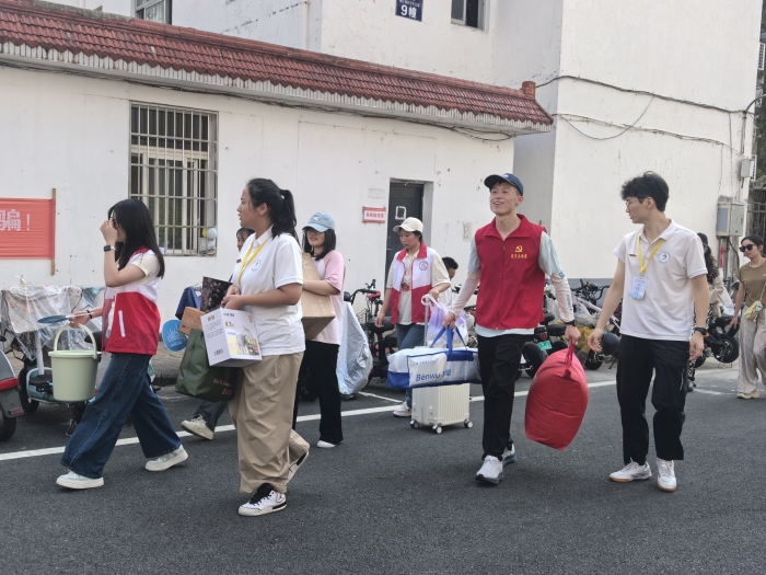 志愿同行暖迎新,温情相伴消陌生。学生志愿者们活跃在迎新第一线,有的在校门口热情引导,有的协助搬运行李,有的为新生介绍校园环境与大学生活,一双双手臂接过同学们的行李、一句句问候为同学们答疑解惑,为同学们消除初来乍到的陌生感。