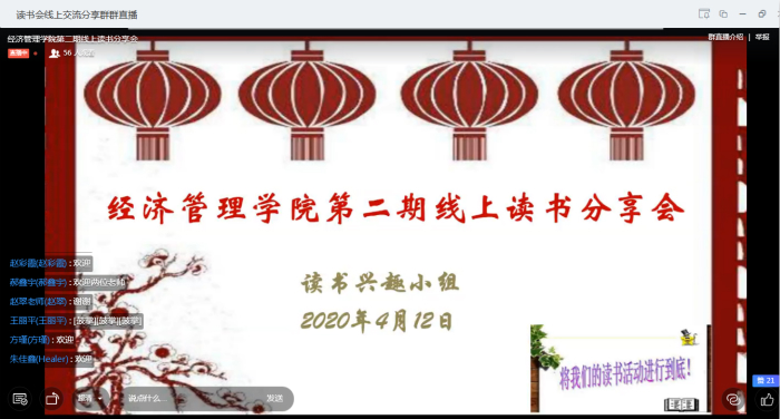 据悉,此次读书会是该院培育和践行经管人精神系列活动之一,也是该院打造书香经管品牌活动之一,旨在积极营造良好的学习文化氛围,引导学生读经典、品原著。