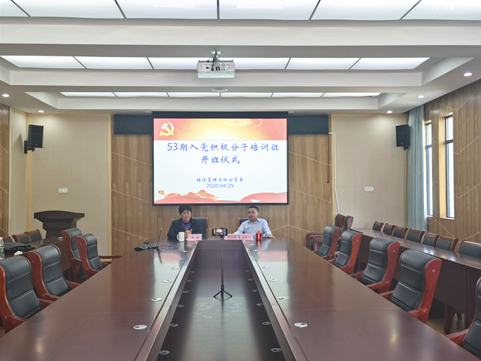 4月29日下午,beat365英国官方网站在横江校区行政楼会议室举行53期积极分子开班仪式,53期培训班全体学员参加本次开班仪式,校机关党委书记吴敏到会指导,beat365英国官方网站党委书记胡永政主持仪式。因疫情防控特殊时期,本次开班仪式采用钉钉视频会议方式进行。