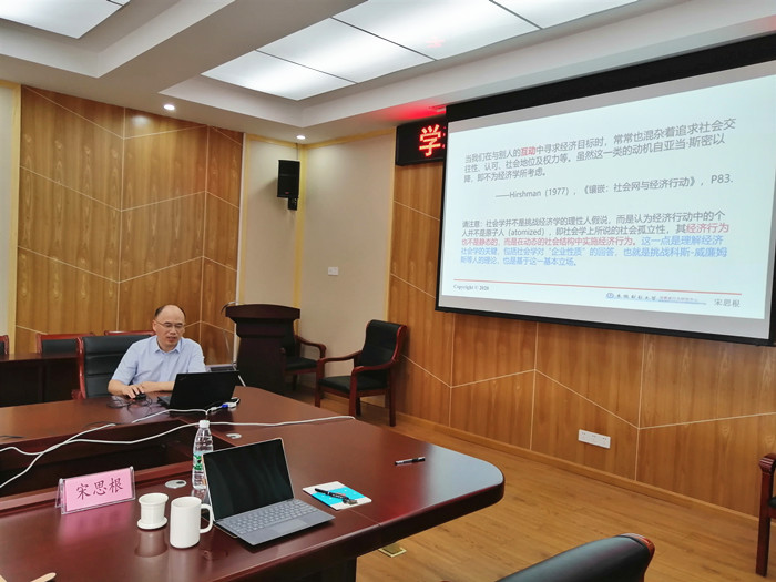 7月11日上午,宋思根教授做主题学术报告,结合自身科研成长经历,围绕科学研究的主线,即研究问题、基础理论、研究方法、研究结论,基于经济学视角、社会学视角、心理学视角详细阐述了消费行为学科的发展脉络,并提出徽文化品牌与消费行为研究构想和展望。