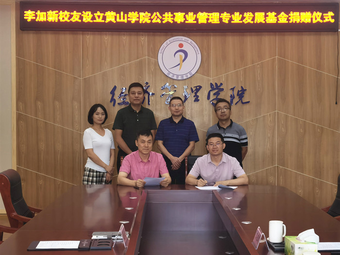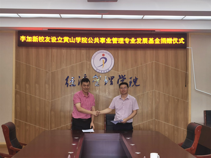 赵士德代表学院与李加新校友签订《合肥晨升知识产权代理有限公司设立beat365英国官方网站“公共事业管理专业发展基金”捐 赠 协 议 书》。