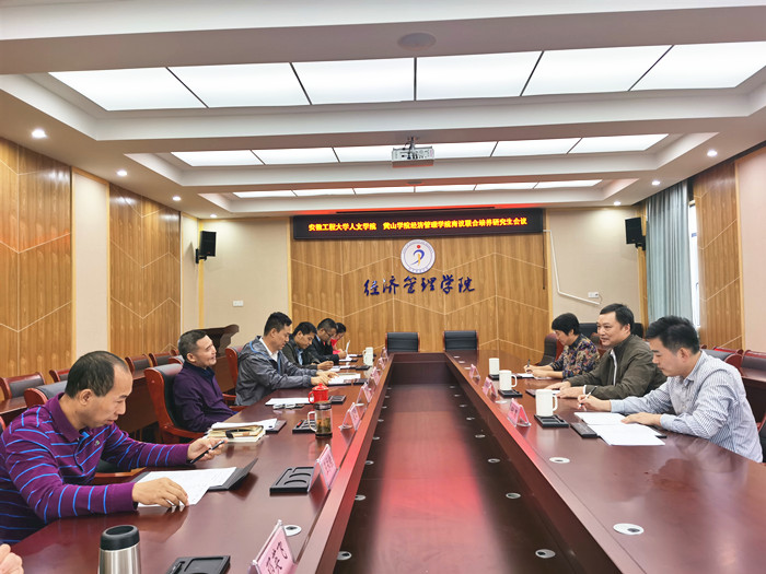 9月22日下午,安徽工程大学人文学院党委书记邓英扣、MPA教育中心办公室副主任张勇、专任教师等一行来经济管理学院商议两校(院)联合培养研究生事宜。beat365英国官方网站党政主要负责人、公共事业管理教研室主任及相关老师参加了会议。