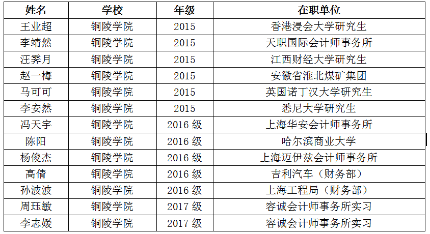铜陵学院(2016)首届ACCA方向班部分优秀学员发展介绍