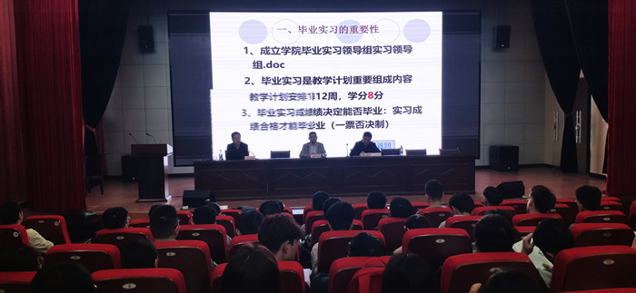 动员会上,赵士德首先布置了毕业实习和毕业论文各项工作,特别对实习要求、毕业论文重要时间节点、查重等问题进行了强调。吴边希望全体毕业生要注意人身安全、信息安全、财产安全,特别要保证人身安全,确保圆满顺利完成实习任务。最后,胡永政梳理了当下就业形势,鼓励同学们努力提高自身核心竞争力,主动融入实习单位;同时对所有学生提出要求,要牢记使命担当,充分发挥实习单位与学校的桥梁纽带作用,做好学校形象的代言人。