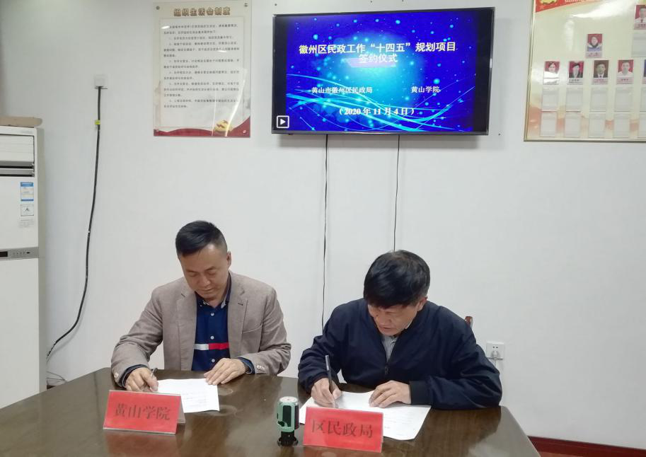 赵士德感谢徽州区民政局对经管学院支持与肯定,他表示经管学院始终坚持走发挥专业优势、积极服务地方的办学道路,会不断深化与徽州区民政局合作,带领团队高质量完成民政事业“十四五”规划编制工作。会后,赵士德与许世家正式签订“十四五”规划编制协议。