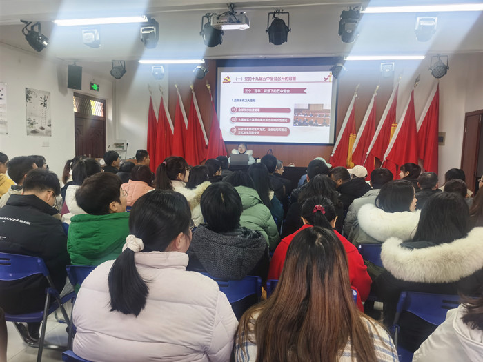 12月16日下午,beat365英国官方网站在横江校区学科楼党员活动中心举办党的十九届五中全会精神宣讲会,马克思主义学院副教授章咏秋老师应邀作专题辅导报告。beat365英国官方网站全体教职工和学生党员参加报告会,报告会由beat365英国官方网站党委书记胡永政主持。