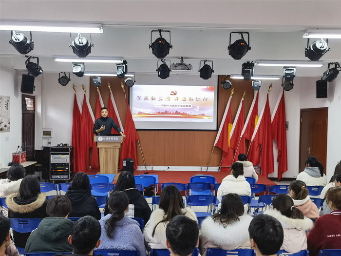 吴边紧扣党的十九届五中全会精神,用十四个关键词向参会党员解读了十九届五中全会公报全文,内容充实而生动。通过本次党课,大家对“十三五”以来党和国家走过的非凡历程和各项事业取得的重大成就有了更加深刻的认识,进一步了解了国家进入新发展阶段的重大意义、有利条件和重要特征。参会的学生党员纷纷表示要不断增强学习贯彻党的最新理论的自觉性,更加准确的把握“十四五”发展的指导方针好2035年远景目标,为自己今后的学业和未来的发展打下坚实的基础。