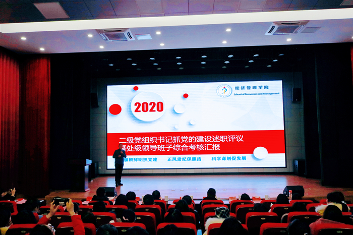 大会在雄壮的国歌声中拉开帷幕。胡永政作2020年学院工作总结报告,报告从党的建设、党风廉政和事业发展三个方面详细阐述学院一年以来所取得的优异成绩。他表示2021年学院会继续全面贯彻落实校党委决策部署,全体“经管人” 将围绕学校“3535”战略目标,练好内功,聚集外力,为推进硕士点建设添砖加瓦,以高质量完成省级“三全育人”综合改革试点项目结项向党的百年华诞献礼。