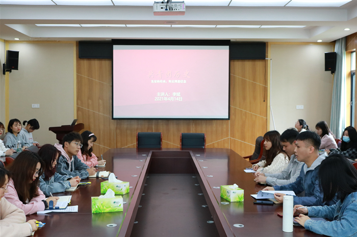 第一阶段,由学院团委副书记李斌主讲以“共青团历史”为主题团课,李斌从中国共产主义青年团的组织性质、基本任务以及中国共青团创立的重要时间节点详细介绍了共青团的光辉历程。他着重强调,共青团作为党缔造和领导的青年政治组织,要把党史学习教育作为发挥党的助手和后备军作用的重大责任,作为团员思想武装和团的思想建设的重要内容,引导广大团员青年厚植爱党、爱国、爱社会主义的情感,让红色基因、革命薪火代代传承。各团学干部就共青团的光辉历程展开研讨学习。