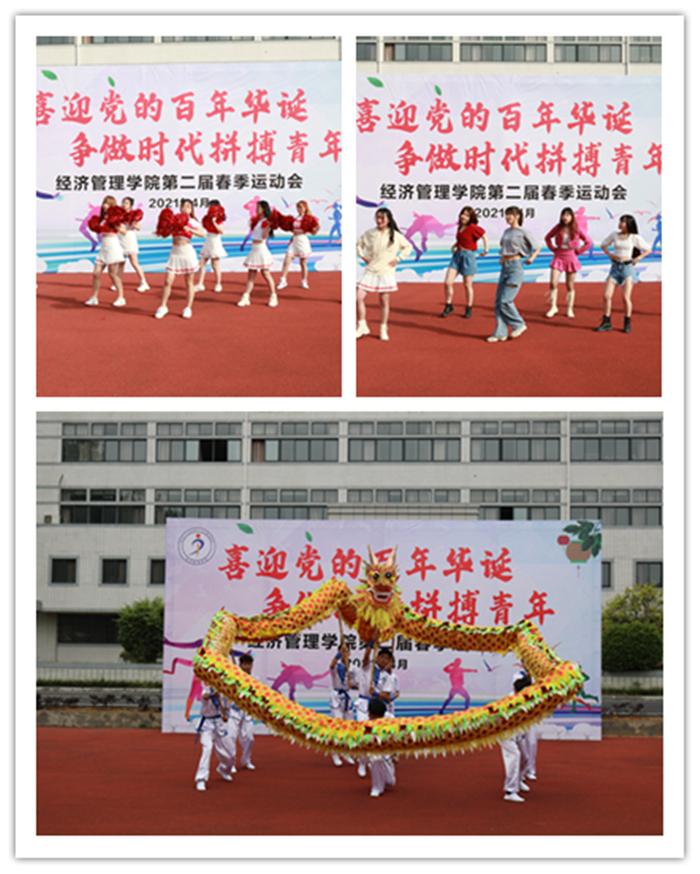 2020级电子商务班陈越代表运动员宣誓。啦啦操表演、爵士舞表演和舞龙表演瞬间点燃运动场上的氛围。
