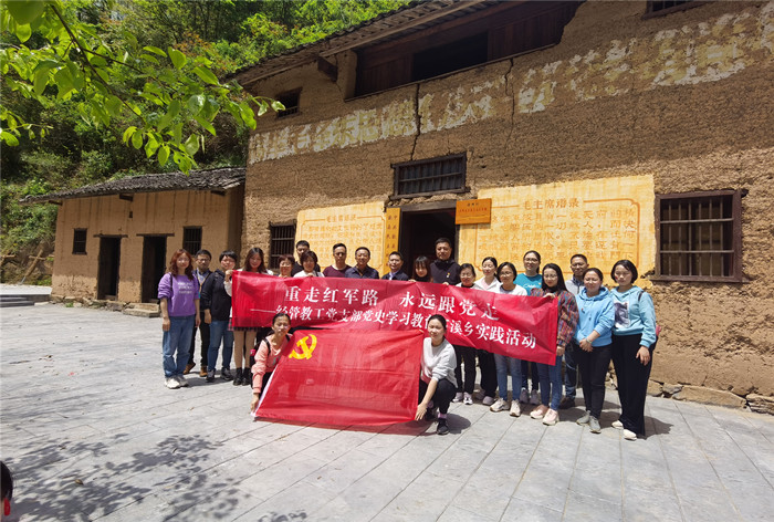 为迎接中国共产党成立100周年,4月17日,beat365英国官方网站教工党支部联合学院分工会组织学院全体教师赴赴徽州区富溪乡开展“重走红军路 永远跟党走”主题党史学习教育。校党委书记汪枫参加并指导本次活动开展。