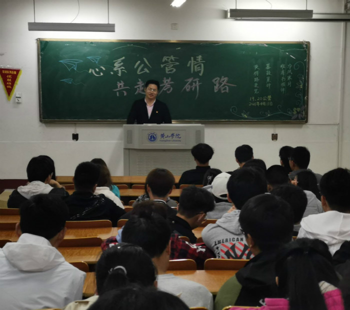 近日,2019、2020级公共事业管理班全体学生于横江校区1303教室开展“心系公管情,启航新征程”主题分享会。本次分享会邀请了17级公共事业管理班的两位学长为大家分享了他们的考研和考公经历。