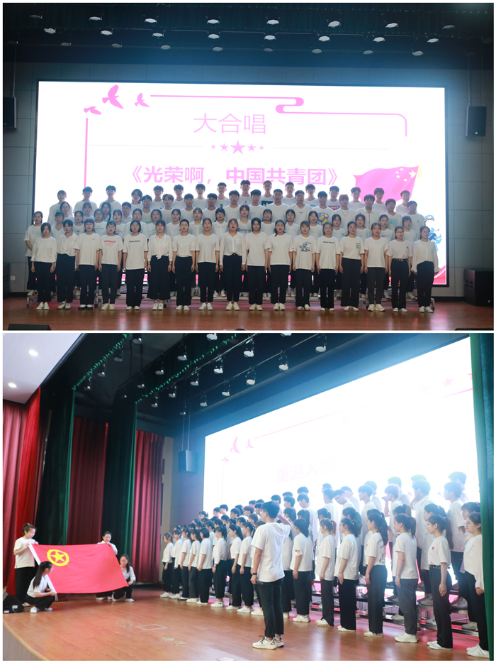 活动在舞蹈《灯火里的中国》中拉开序幕,绚丽的舞姿同爱国的心一齐跳动;党史知识竞猜环节将活动的气氛推向了高潮,人人参与方式的党史学习,激发了青年学子对党史学习兴趣,弘扬了红色文化精神;随后,2020级市场营销对口团支部全体成员带来大合唱《光荣啊,中国共青团》,同学们蓬勃的朝气、飞扬的歌声充分体现了当代青年大学生积极向上的精神面貌;合唱结束后,2020市场营销对口团支部的团支书汪健带领本支部全体团员重温入团誓词,重在唤起每一位团员的团员意识,时刻牢记自己是一名共青团员,自觉加强组织性和纪律性,进一步加强团支部的向心力与战斗力,做坚强党的后备军。