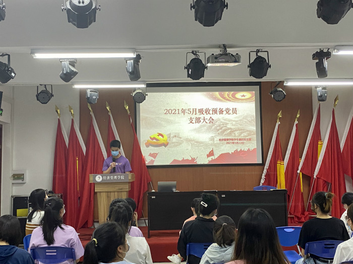 5月22日,学生第四党支部于beat365英国官方网站党员活动中心召开2021年5月吸收预备党员支部大会,会议由支部书记赵翠主持,19名同学的培养介绍人、四支部全体师生党员参会。