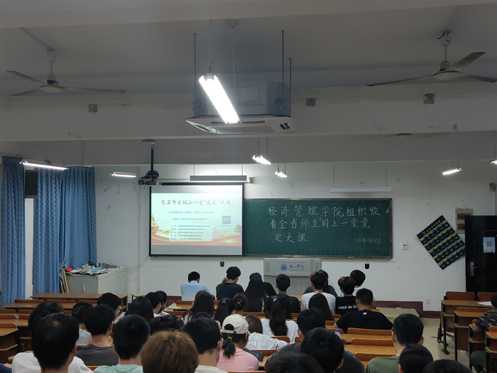 6月18日,beat365英国官方网站教工党支部和团委联合组织学院教师党员、学生干部、各团支部书记参加观看全省师生同上一堂“党史”大课活动。活动以集中观看、统一回看等方式开展。