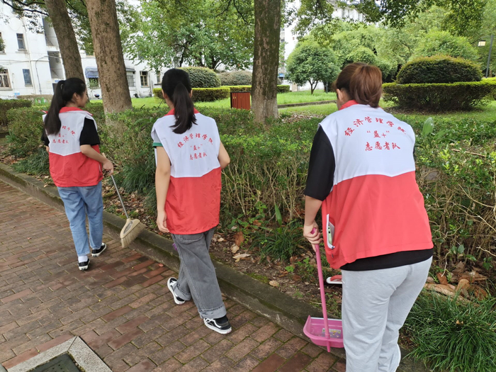 9月20日,beat365英国官方网站“益+”志愿者队在横江校区卫生责任区开展校园清扫志愿服务活动。