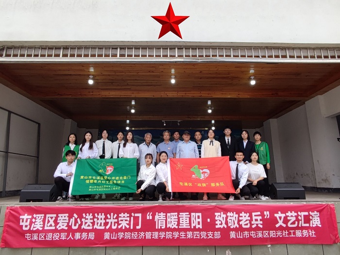 为传承和弘扬中华民族尊老敬老的优良传统,进一步落实关心关爱退役军人的晚年生活,体现当代大学生党员服务人民服务社会情怀与担当,发挥先锋模范作用,10月17日,学生第四党支部联合屯溪区“爱心送进光荣门-情暖老兵”开展“关爱老兵,不止重阳”文艺汇演活动。学生第四党支部党员、入党积极分子、南溪南老兵、村民等共同参与。