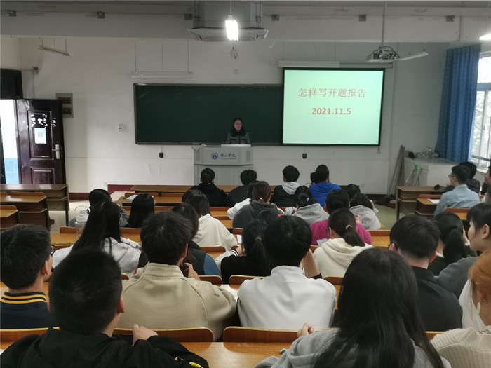 吴文浩首先介绍了毕业论文写作是大学四年本科学习的集中升华和全面检验,通过毕业论文写作可以提升专业素养、专业能力、实践意识以及问题意识。其次,结合具体案例对毕业论文的写作要求、写作方法和格式规范等进行了详细地讲解。并且,她还从研究目的、国内外研究现状、查找和运用参加文献等方面对开题报告的撰写要求和规范进行说明。最后,根据往年写作过程中存在的问题,提醒学生们在写作过程中应该注意的相关事项。