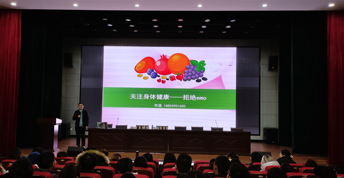 12月4日,校团委文体科科长李晟老师分别从什么是营养、怎样做到营养均衡、食物的类型、科学减肥这四个方面生动形象向同学讲述身体健康知识,鼓励学生多运动,健康快乐成长。