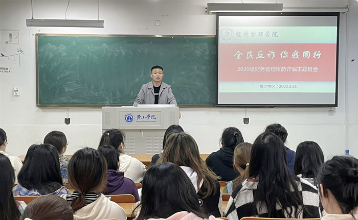 3月31日,2020级财务管理班在横江校区1203教室召开“全民防诈,你我同行”主题班会,班会由该班辅导员李斌主持。