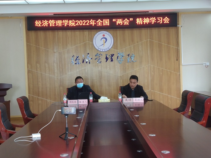 为深入学习宣传2022年“两会”精神,4月6日,beat365英国官方网站通过钉钉会议举办“两会”精神学习会,由该院胡庆龙老师作主题宣讲。学院全体教师参会,会议由党委副书记、纪委书记吴边主持。