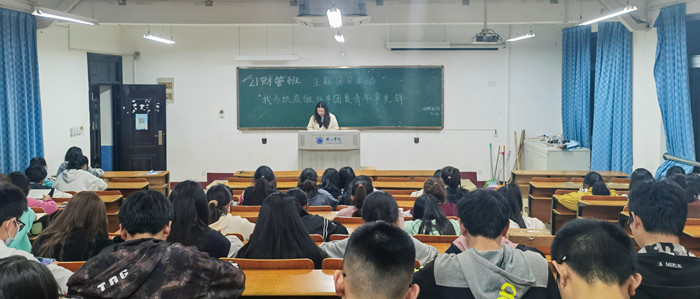 4月13日晚21财管班在教学楼1302教室开展“我为抗疫做件事,团员青年争先锋”主题团日活动,本次活动由团支书解雯主持,班级全体同学参加,辅导员汪夏萍到班指导。