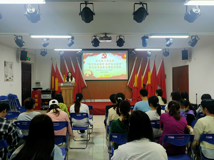 2022年4月28日,beat365英国官方网站学生第二党支部于党员活动中心开展“学习两会精神,践行初心使命”主题党日活动,活动由支部书记汪夏萍主持,全体党员参与此次活动。