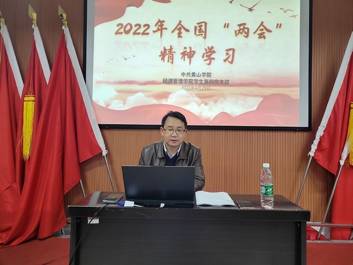 4月29日,学生第四党支部于横江校区行政楼党员活动中心开展学习全国“两会”精神主题党日活动,特邀马克思主义学院吴兆云副教授作辅导报告。报告会由宣传委员王星主持,全体党员和部分积极分子参加。