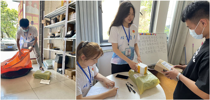 为解决北区取快递不便这一难题,学院成立快递互助小组,定时收集班级取快递需求,定点代取快递包裹,小组成员耐心细心对待每一个快递,按时妥善的将包裹送到每一位同学的手中,此行为在全院获得一致好评。累计代取快递496件,服务学生302人次。