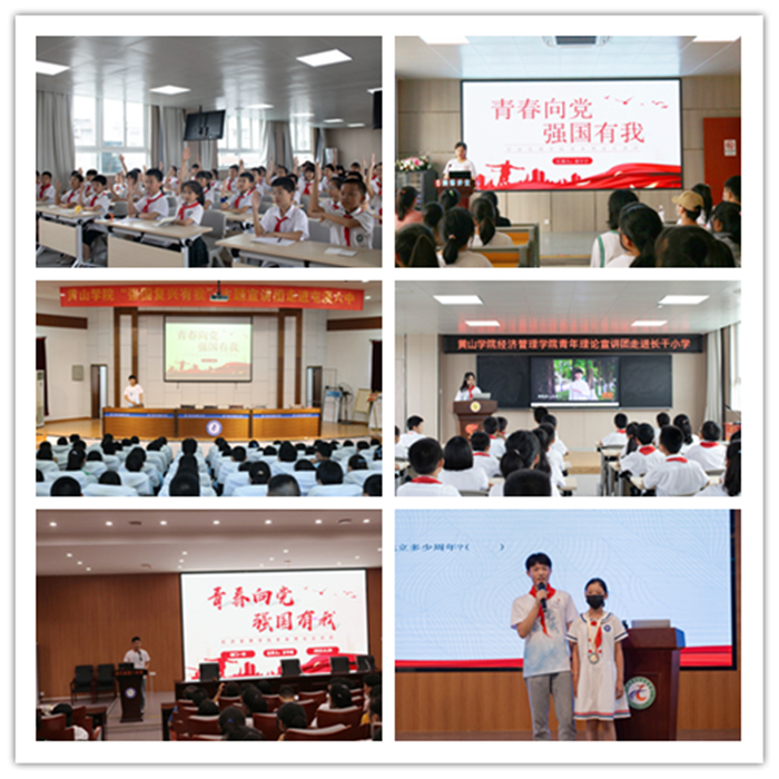 6月17日-23日,beat365英国官方网站青年理论宣讲团赴祁门一中、祁门实验学校、屯溪长干小学、屯溪六中、屯溪现代实验学校共计5个学校开展以“青春向党·强国有我”为主题的青年理论宣讲活动。该院团委副书记李斌、专职辅导员汪夏萍带队指导。