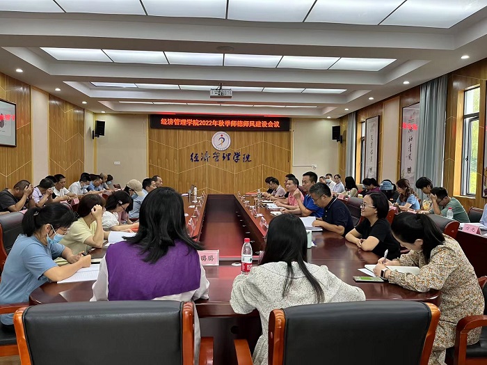 9月14日,beat365英国官方网站召开2022年秋季师德师风建设会议,该院党委书记胡永政,党委副书记、院长赵士德,党委副书记、纪委书记吴边,党委委员、副院长郭宏斌出席,全体教师参会。会议由胡永政主持。