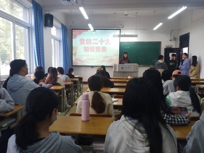 首先,周卉带领支部党员一起学习党的二十大报告,深刻领会和准确把握党的二十大的重大意义、丰富内涵、核心要义及实践要求。随后,支部以知识竞赛的形式巩固学习成果,支部党员积极参与,争相回答问题,一道道紧扣主题的问题,充分调动了同学们的学习热情。参会党员及发展对象们在赛后纷纷表示要“进一步深刻学习领会党的二十大报告内容,切实把思想和行动统一到党的二十大精神上来。”