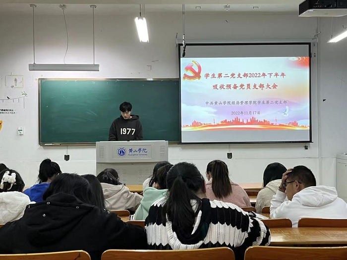 11月17日下午,学生第二党支部于教学楼1203教室召开2022年下半年吸收预备党员支部大会,会议由支部书记汪夏萍主持,支部全体党员参加。