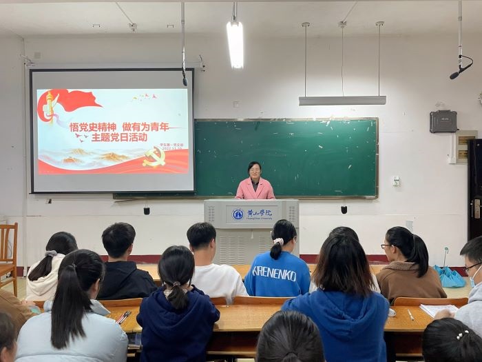 2022年11月20日,学生第一党支部在教学楼1201教室开展“悟党史精神,做有为青年”主题党日活动,会议由党支部书记李金云主持,第一支部全体党员参加。
