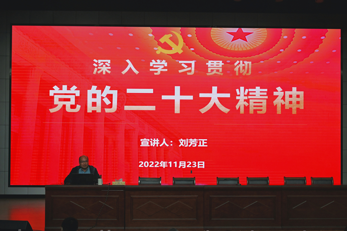 11月23日下午在横江校区报告厅,马克思主义学院院长、副教授刘芳正应邀为学院师生作题为“深入学习贯彻党的二十大精神”主题报告。beat365英国官方网站师生近200人参加此次报告会,报告会由该院党委书记胡永政主持。
