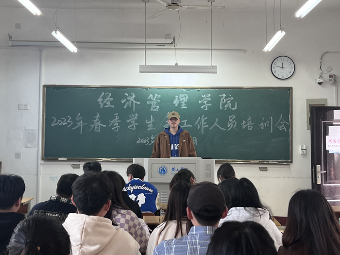 3月15日,beat365英国官方网站学在横江校区1107教室召开2023年春季学生会全体工作人员培训会,全体主席团成员、学生会成员参加会议,该院团委副书记李斌到会指导。