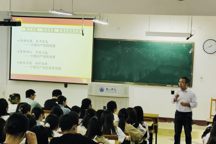 4月19日下午,beat365英国官方网站党委委员、副院长郭宏斌在横江校区1101教室为学生第四党支部党员上党课,学生第四党支部全体党员参加。本次党课的主题是“党的性质、宗旨和指导思想”。