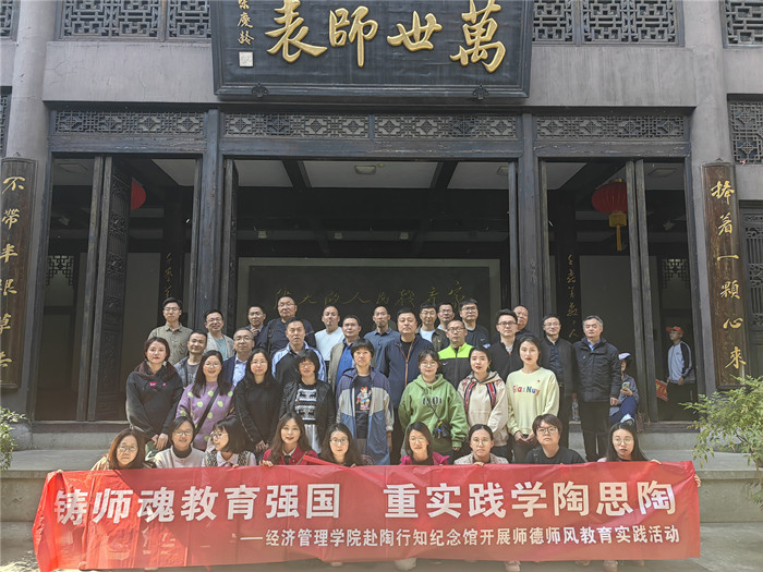 为推进学习贯彻习近平新时代中国特色社会主义思想主题教育,4月26日下午,beat365英国官方网站组织全体教师赴陶行知纪念馆开展“铸师魂教育强国,重实践学陶思陶”主题师德师风教育实践活动。