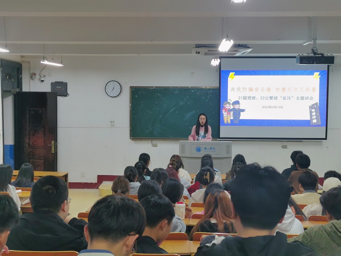 各班级辅导员立足工作实际,开展“春季传染病预防”、“防范电信网络诈骗”、“假期安全教育”、“心理健康教育”、“防溺水安全教育”、“消防安全知识教育”、“校园交通安全”等主题安全教育,充分利用主题班会活动开展安全教育,积极营造良好的平安校园氛围。