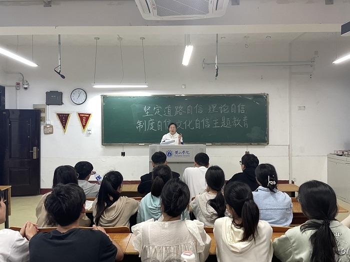 5月8日beat365英国官方网站学生第一党支部在横江校区1303教室开展坚定“四个自信”主题教育学习会,支部书记李金云主持会议,学生第一党支部全体成员参加。