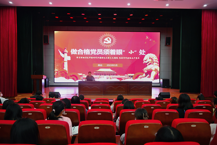 5月17日下午,beat365英国官方网站党委副书记吴边在横江校区报告厅为学生第二党支部党员上党课,党课主题为“做合格党员须着眼‘小’处”。