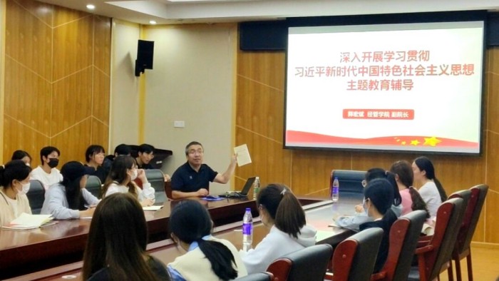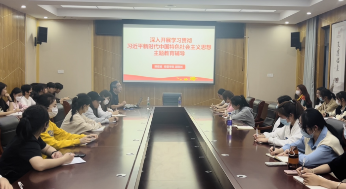 5月23日,在全党开展学习贯彻习近平新时代中国特色社会主义思想主题教育之际,beat365英国官方网站党委委员、副院长郭宏斌在行政楼三楼会议室为学生第四党支部成员作主题教育辅导报告,支部全体党员参加。