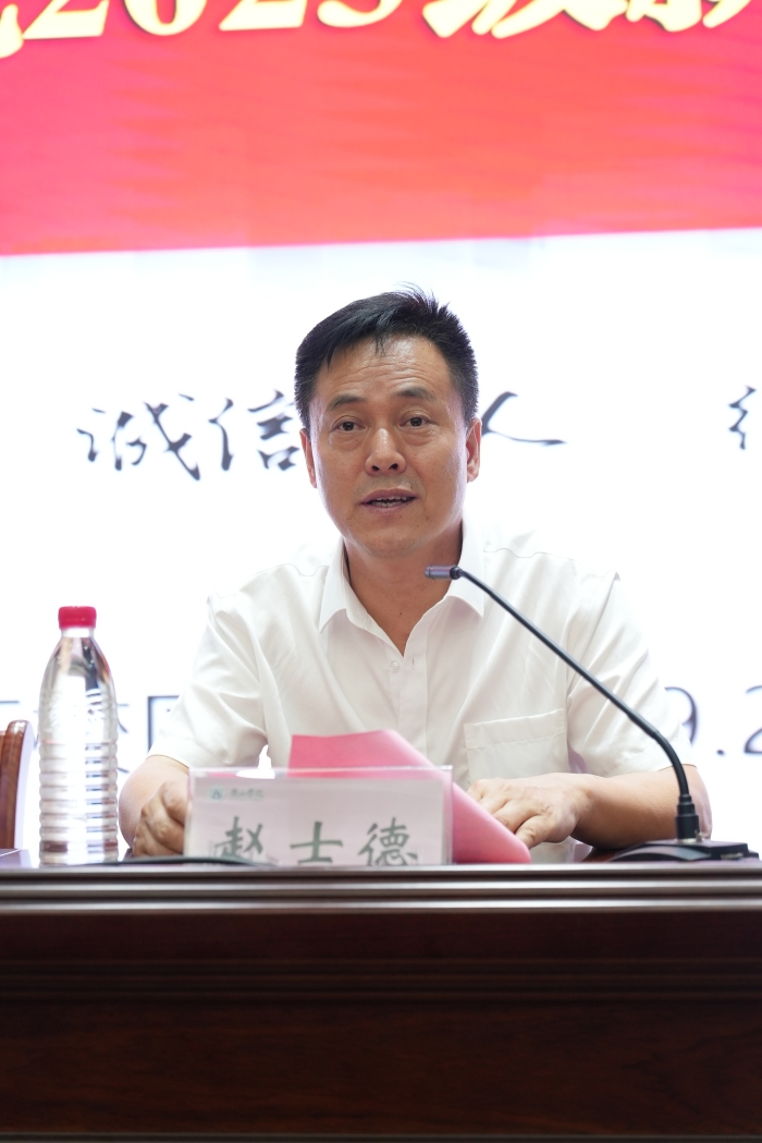 赵士德致欢迎词。他介绍了学院办学历史、办学特色和突出的育人成果,勉励新生既要培养独立精神,又要锻炼协作能力;既要做知识的传承者,又要做思想的创造者、分享者。要求真学问,学做真人,严于律己、宽以待人,求同存异、取长补短,兼容并包、相互成就;始终胸怀敬畏之心、感恩之心;踏踏实实学习,本本分分做人,无论什么时候、走到哪里,都要有个经管人的样子。他提醒同学们要炼就好身体,努力成长为“有社会责任、有创新精神、有专业知识、有实践能力、有健康身心”的社会主义建设者和接班人。